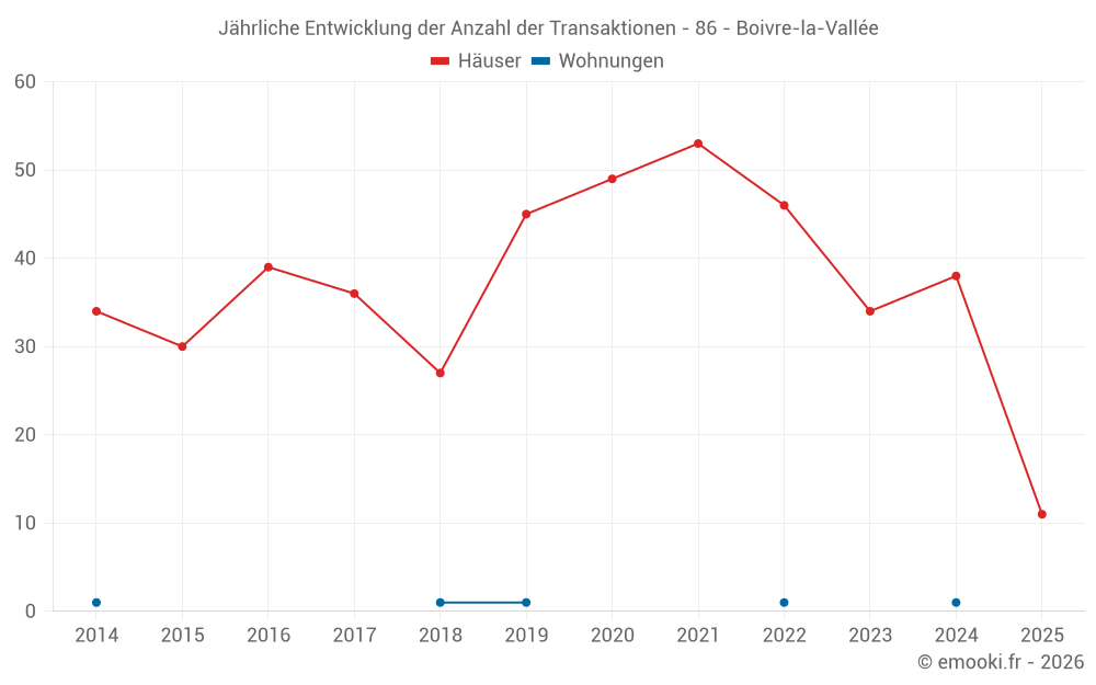 Der Durchschnittspreis auf den 32 Hausgeschäften der letzten 12 Monate in der Gemeinde Boivre-la-Vallée betrug 1 297 € pro Quadratmeter für einen mittleren Immobilienwert von 125 150 €. Über diesen Zeitraum hinweg lagen 60% der Transaktionen zwischen 908 und 1 701 € pro Quadratmeter (vom 2. bis zum 8. Dezil).