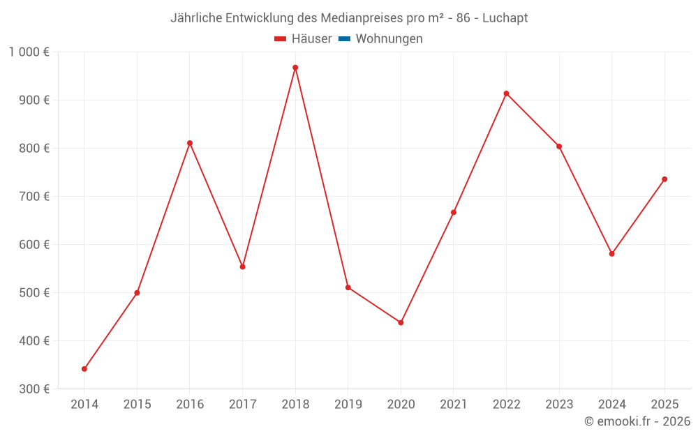 Der Preis pro m² von Häusern ist seit 7 Jahren um 24% gesunken, aber er ist in 11 Jahren um 115% gestiegen.