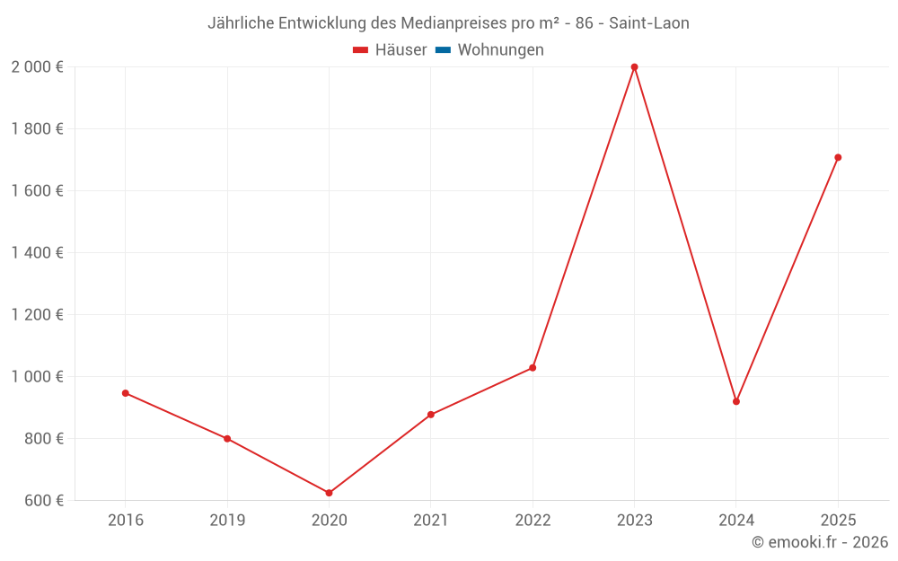 Entwicklung des Medianpreises pro m² von Häusern