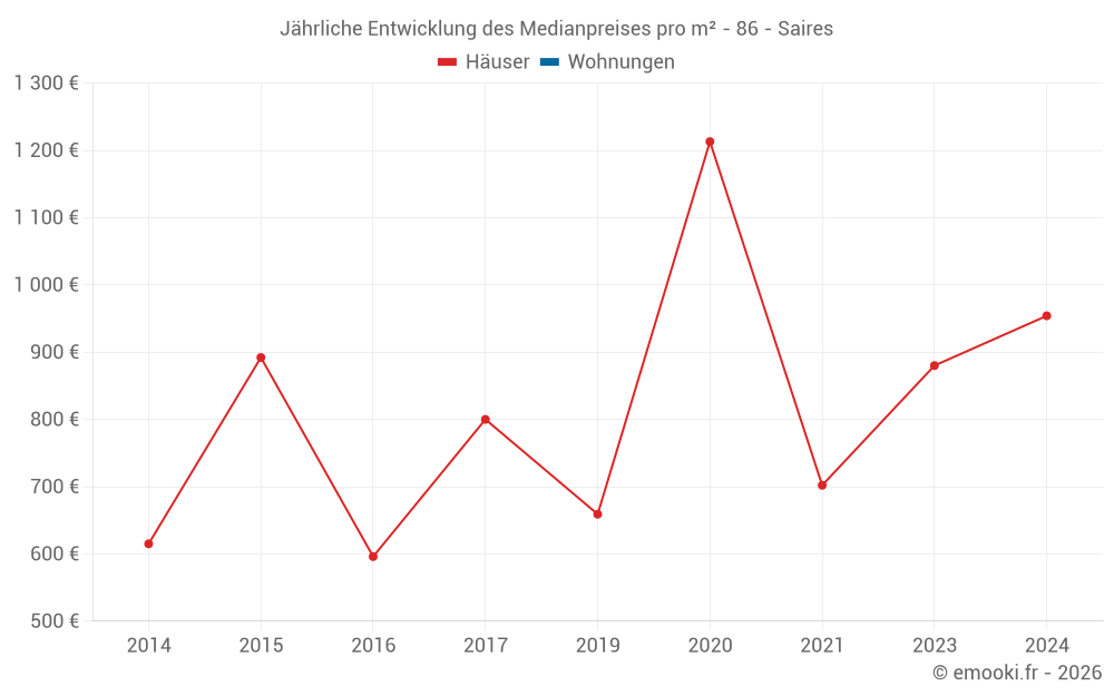 Entwicklung des Medianpreises pro m² von Häusern