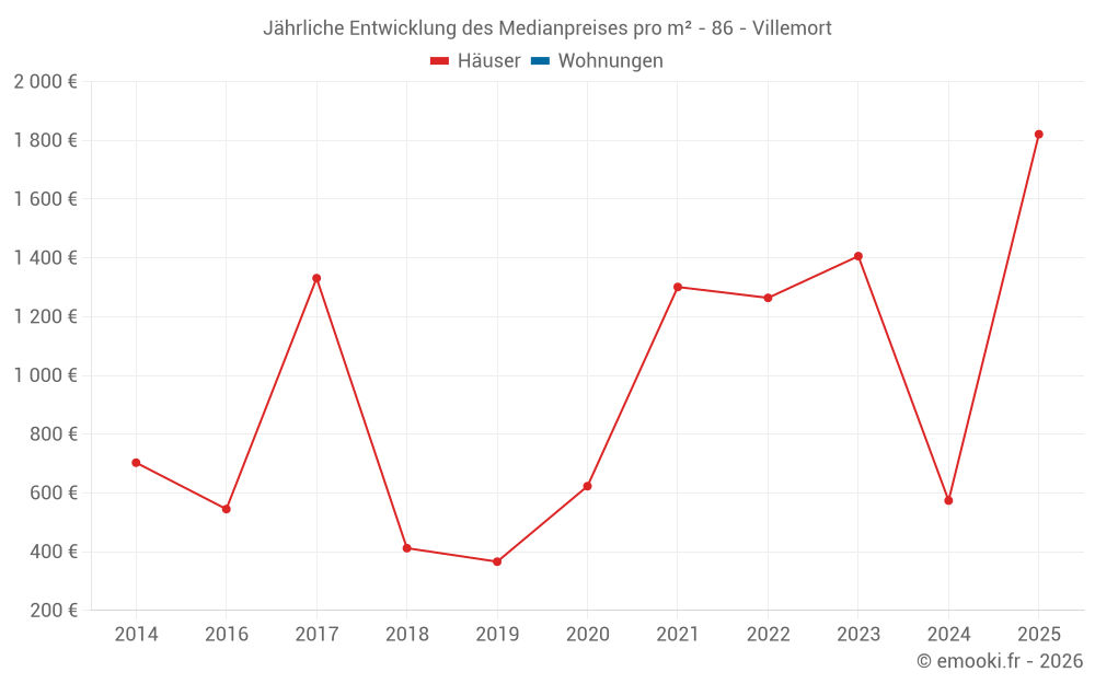 Entwicklung des Medianpreises pro m² von Häusern