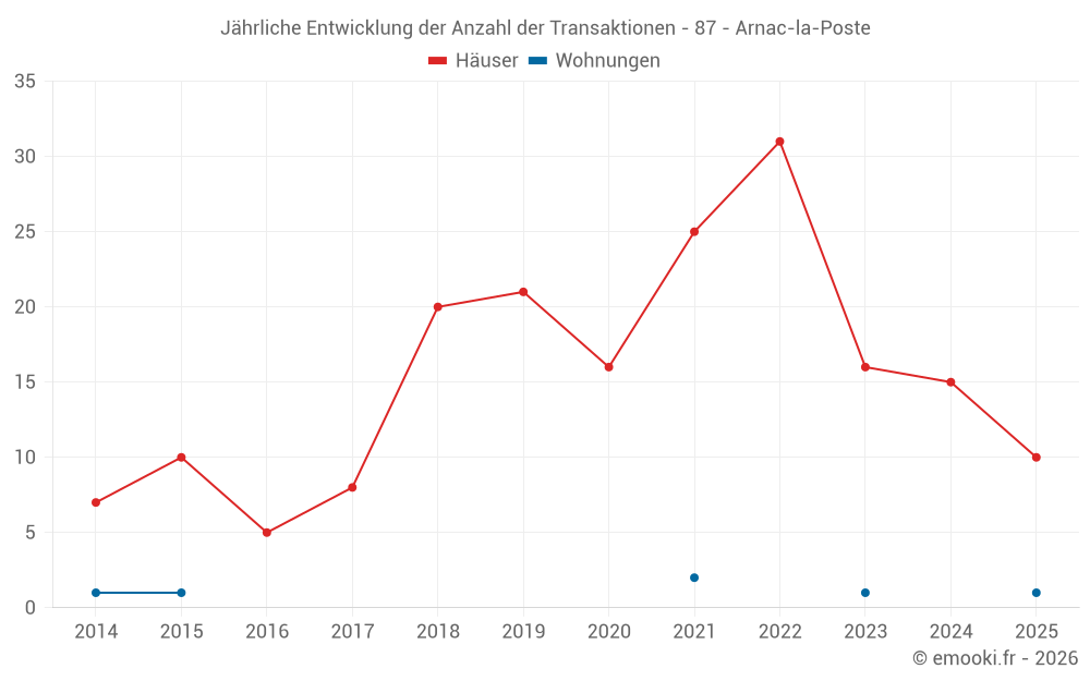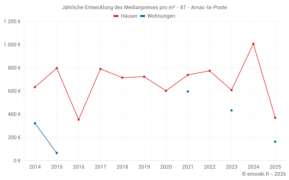 Der Durchschnittspreis auf den 20 Hausgeschäften der letzten 12 Monate in der Gemeinde Arnac-la-Poste betrug 798 € pro Quadratmeter für einen mittleren Immobilienwert von 70 050 €. Über diesen Zeitraum hinweg lagen 60% der Transaktionen zwischen 310 und 1 057 € pro Quadratmeter (vom 2. bis zum 8. Dezil).