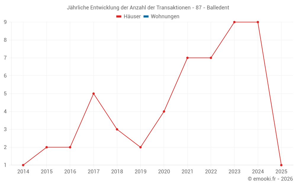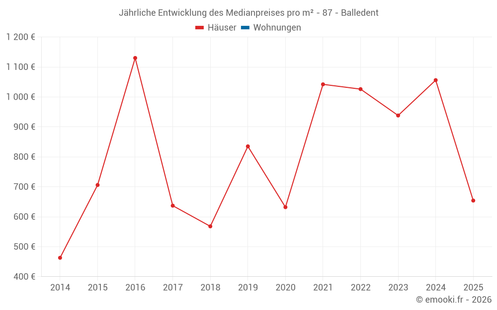 Der Durchschnittspreis auf den 15 Hausgeschäften der letzten 24 Monate in der Gemeinde Balledent betrug 1 000 € pro Quadratmeter für einen mittleren Immobilienwert von 90 000 €. Über diesen Zeitraum hinweg lagen 60% der Transaktionen zwischen 513 und 1 246 € pro Quadratmeter (vom 2. bis zum 8. Dezil).