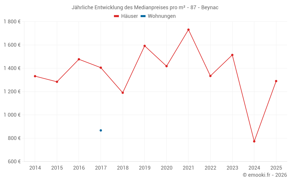 Entwicklung des Medianpreises pro m² von Wohnungen
