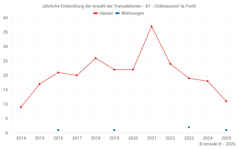 Der Durchschnittspreis auf den 20 Hausgeschäften der letzten 12 Monate in der Gemeinde Châteauneuf-la-Forêt betrug 904 € pro Quadratmeter für einen mittleren Immobilienwert von 83 750 €. Über diesen Zeitraum hinweg lagen 60% der Transaktionen zwischen 578 und 1 316 € pro Quadratmeter (vom 2. bis zum 8. Dezil).
