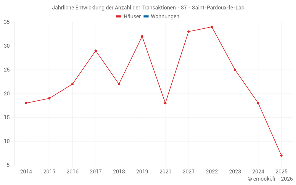 Der Durchschnittspreis auf den 19 Hausgeschäften der letzten 12 Monate in der Gemeinde Saint-Pardoux-le-Lac betrug 1 210 € pro Quadratmeter für einen mittleren Immobilienwert von 90 001 €. Über diesen Zeitraum hinweg lagen 60% der Transaktionen zwischen 600 und 1 549 € pro Quadratmeter (vom 2. bis zum 8. Dezil).
