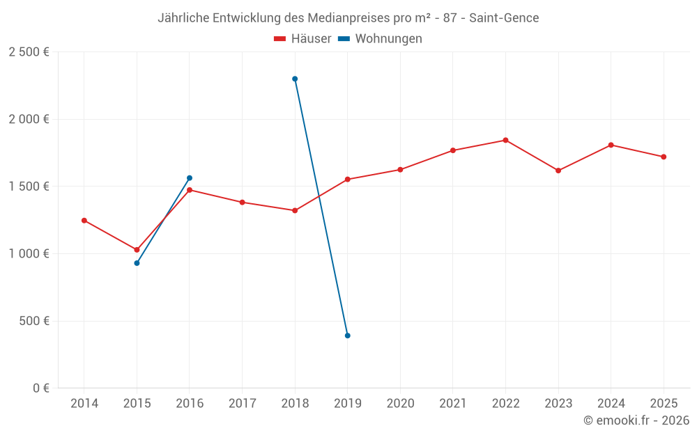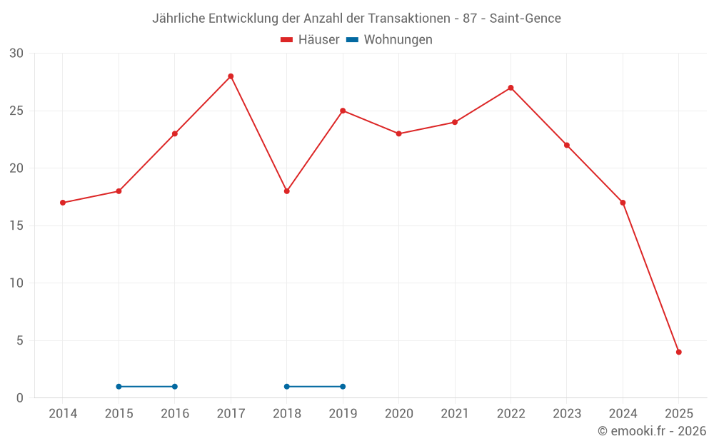 Der Durchschnittspreis auf den 17 Hausgeschäften der letzten 12 Monate in der Gemeinde Saint-Gence betrug 1 833 € pro Quadratmeter für einen mittleren Immobilienwert von 170 000 €. Über diesen Zeitraum hinweg lagen 60% der Transaktionen zwischen 1 577 und 2 115 € pro Quadratmeter (vom 2. bis zum 8. Dezil).