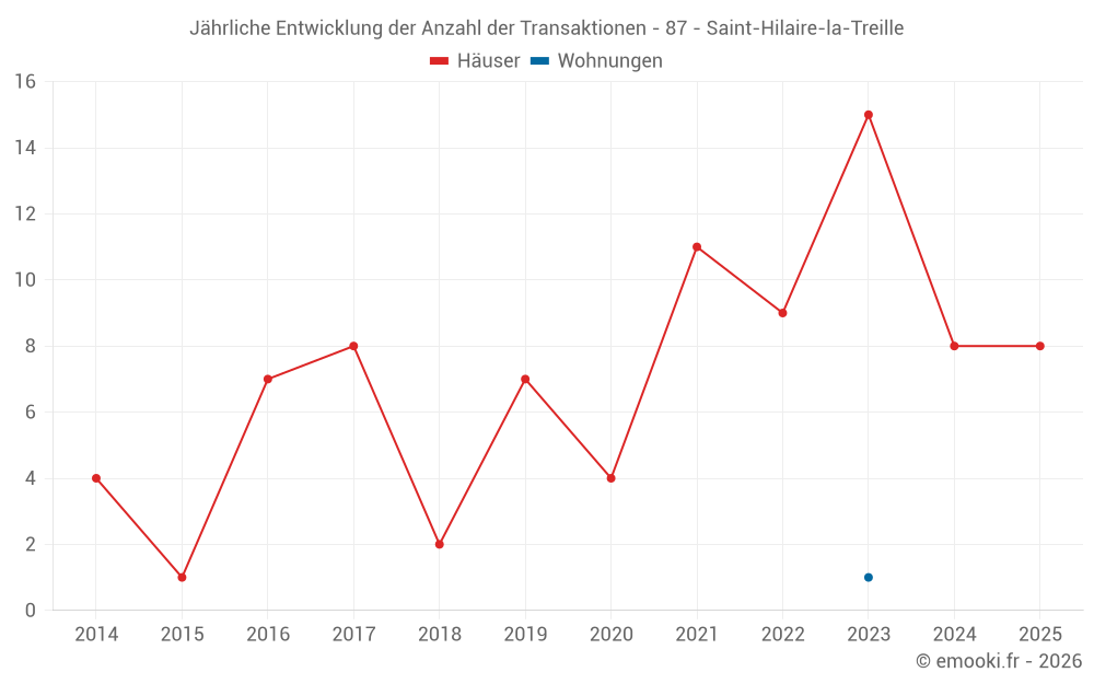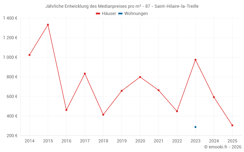 Der Durchschnittspreis auf den 24 Hausgeschäften der letzten 24 Monate in der Gemeinde Saint-Hilaire-la-Treille betrug 635 € pro Quadratmeter für einen mittleren Immobilienwert von 47 000 €. Über diesen Zeitraum hinweg lagen 60% der Transaktionen zwischen 270 und 1 185 € pro Quadratmeter (vom 2. bis zum 8. Dezil).