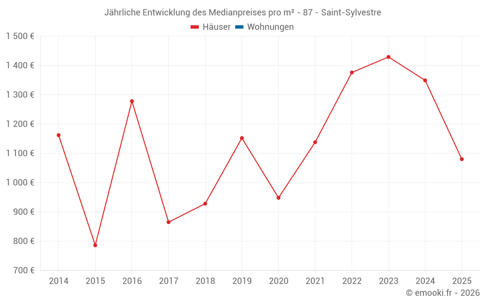 Der Durchschnittspreis auf den 20 Hausgeschäften der letzten 24 Monate in der Gemeinde Saint-Sylvestre betrug 1 201 € pro Quadratmeter für einen mittleren Immobilienwert von 95 000 €. Über diesen Zeitraum hinweg lagen 60% der Transaktionen zwischen 528 und 1 705 € pro Quadratmeter (vom 2. bis zum 8. Dezil).