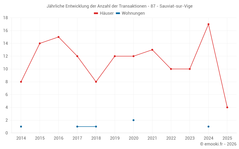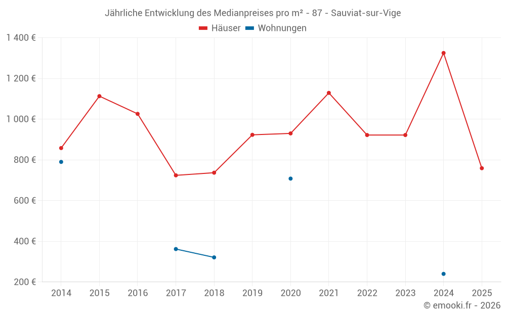 Der Durchschnittspreis auf den 27 Hausgeschäften der letzten 24 Monate in der Gemeinde Sauviat-sur-Vige betrug 1 266 € pro Quadratmeter für einen mittleren Immobilienwert von 105 000 €. Über diesen Zeitraum hinweg lagen 60% der Transaktionen zwischen 844 und 1 579 € pro Quadratmeter (vom 2. bis zum 8. Dezil).