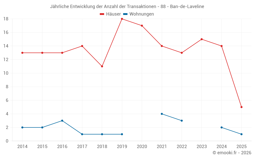 Der Durchschnittspreis auf den 27 Hausgeschäften der letzten 24 Monate in der Gemeinde Ban-de-Laveline betrug 1 650 € pro Quadratmeter für einen mittleren Immobilienwert von 155 000 €. Über diesen Zeitraum hinweg lagen 60% der Transaktionen zwischen 909 und 2 387 € pro Quadratmeter (vom 2. bis zum 8. Dezil).