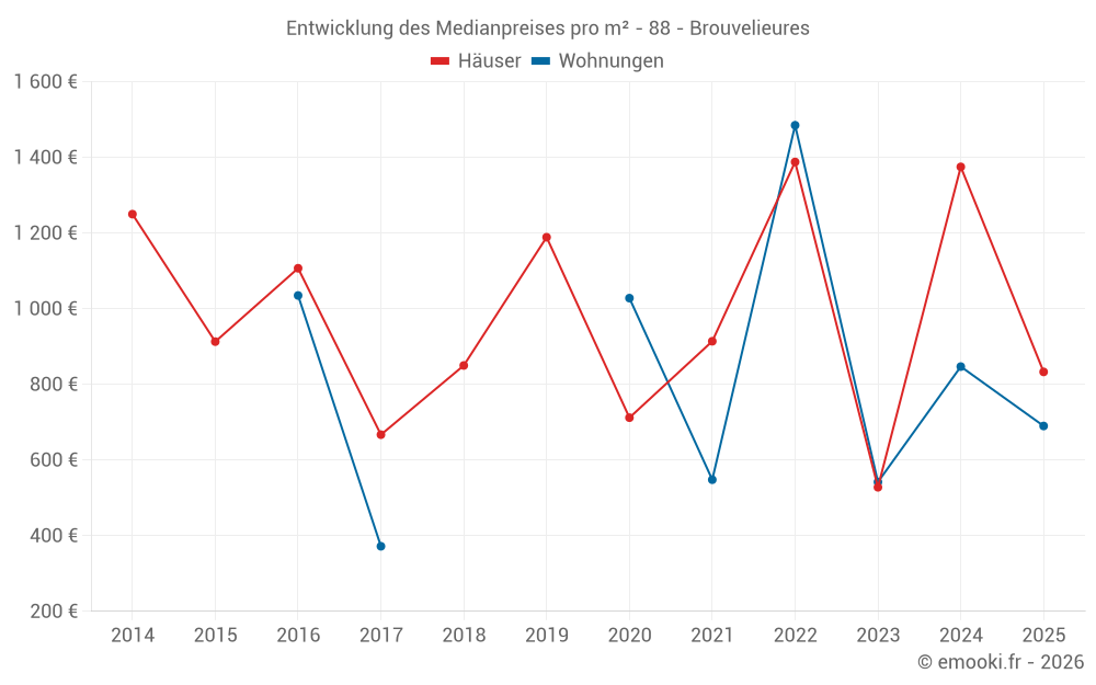 Karte der Immobilienpreise in der Gemeinde Brouvelieures, wählen Sie einen Abschnitt, um Transaktionen nach Parzelle zu sehen.