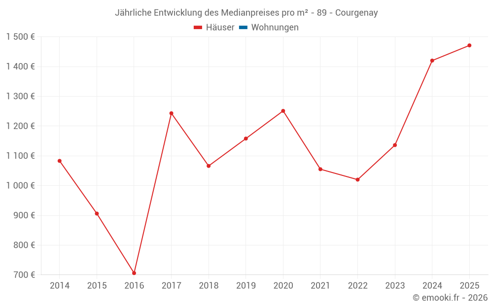 Entwicklung des Medianpreises pro m² von Häusern