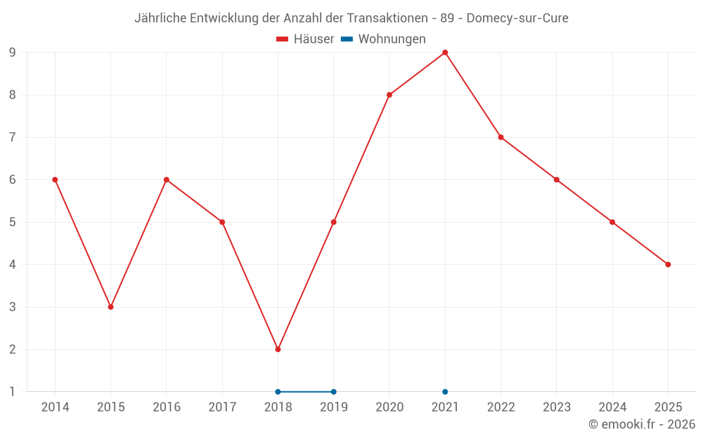 Der Preis pro m² von Häusern ist seit 9 Jahren um 73% gestiegen, aber er ist in 11 Jahren um 22% gesunken.
