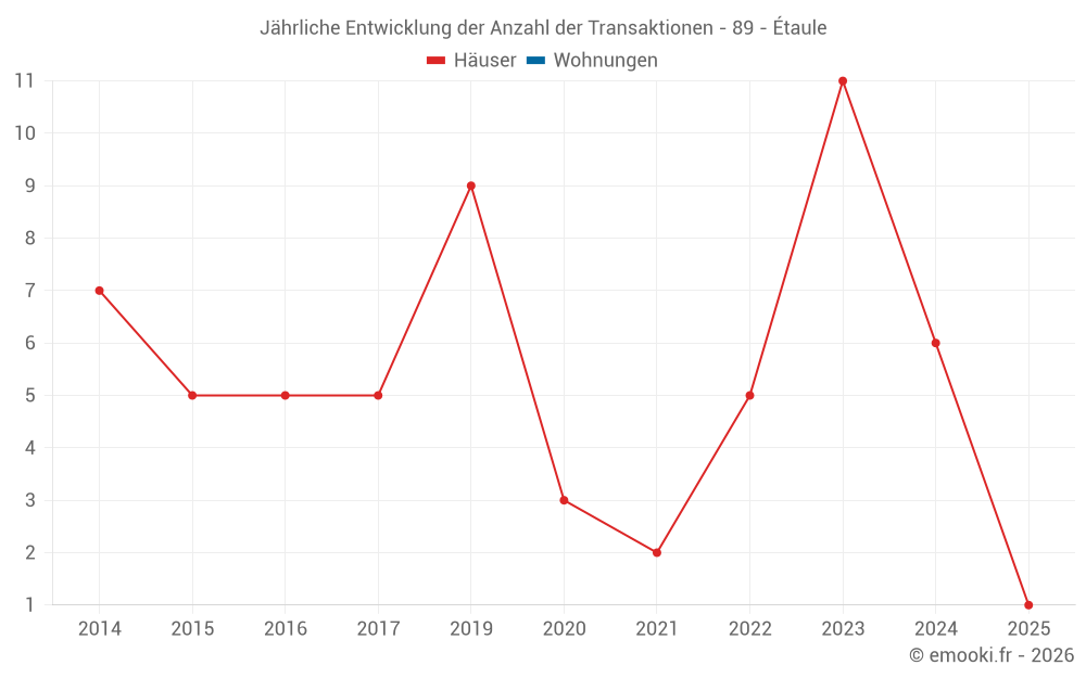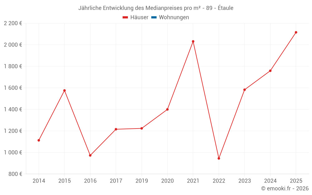Der Durchschnittspreis auf den 15 Hausgeschäften der letzten 24 Monate in der Gemeinde Étaule betrug 1 685 € pro Quadratmeter für einen mittleren Immobilienwert von 119 000 €. Über diesen Zeitraum hinweg lagen 60% der Transaktionen zwischen 1 159 und 2 075 € pro Quadratmeter (vom 2. bis zum 8. Dezil).