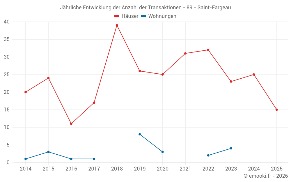 Der Durchschnittspreis auf den 29 Hausgeschäften der letzten 12 Monate in der Gemeinde Saint-Fargeau betrug 1 178 € pro Quadratmeter für einen mittleren Immobilienwert von 90 000 €. Über diesen Zeitraum hinweg lagen 60% der Transaktionen zwischen 769 und 1 359 € pro Quadratmeter (vom 2. bis zum 8. Dezil).