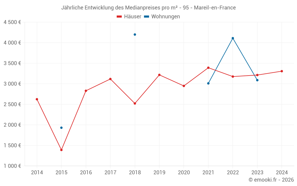 Entwicklung des Medianpreises pro m² von Wohnungen