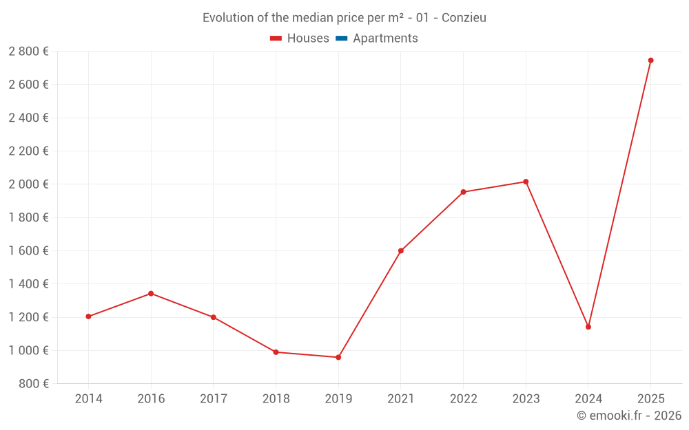 Real estate price map in the municipality of Conzieu, choose a section to see transactions by parcel.