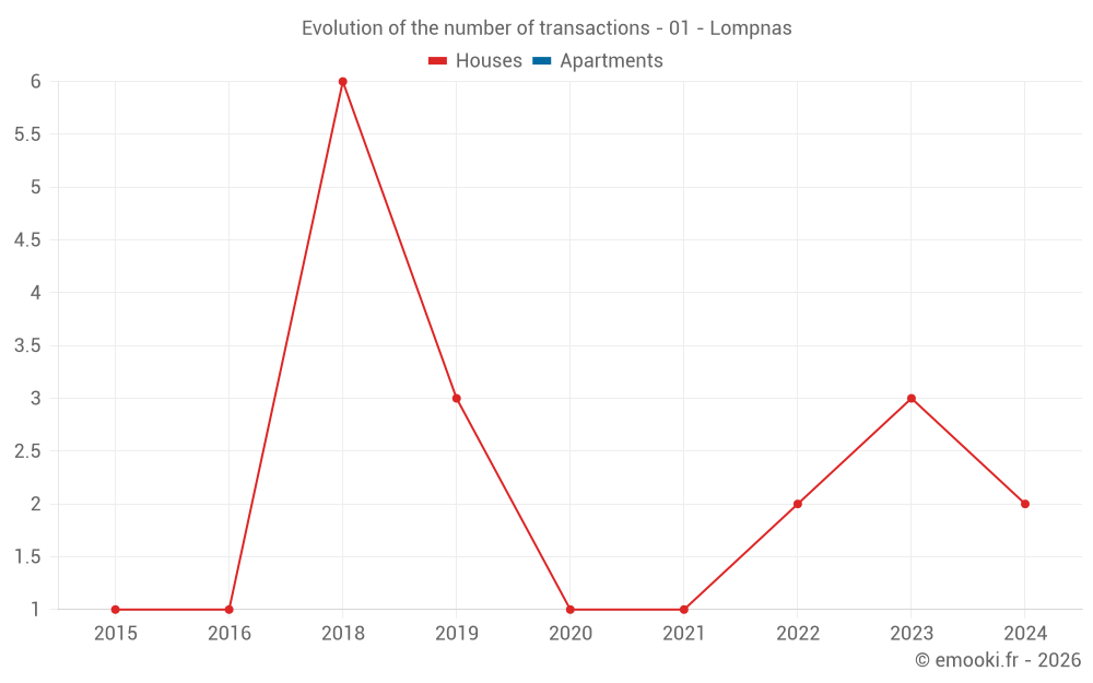 Real estate price map in the municipality of Lompnas, choose a section to see transactions by parcel.