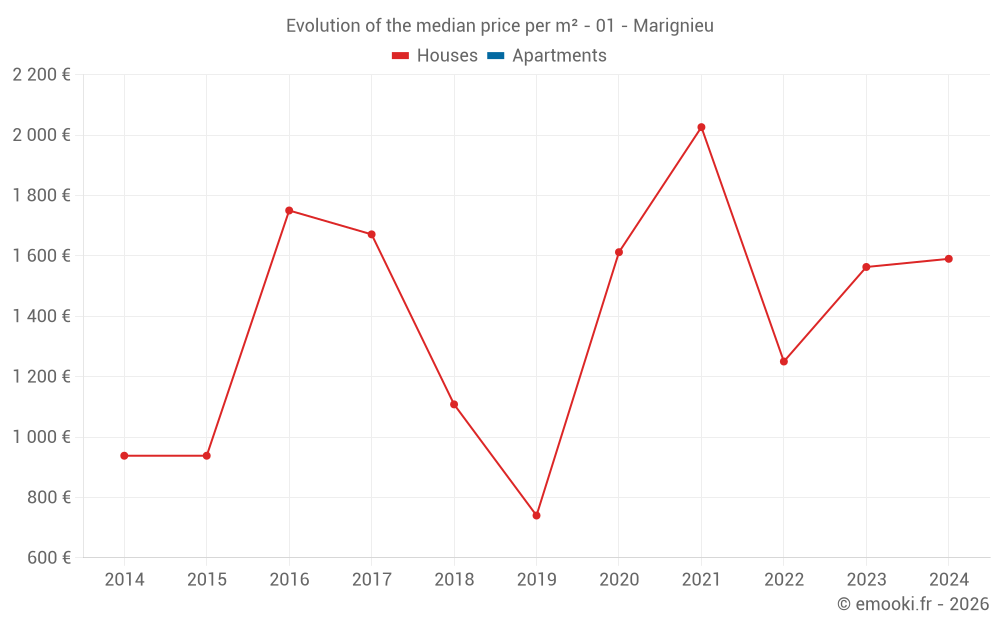 Real estate price map in the municipality of Marignieu, choose a section to see transactions by parcel.