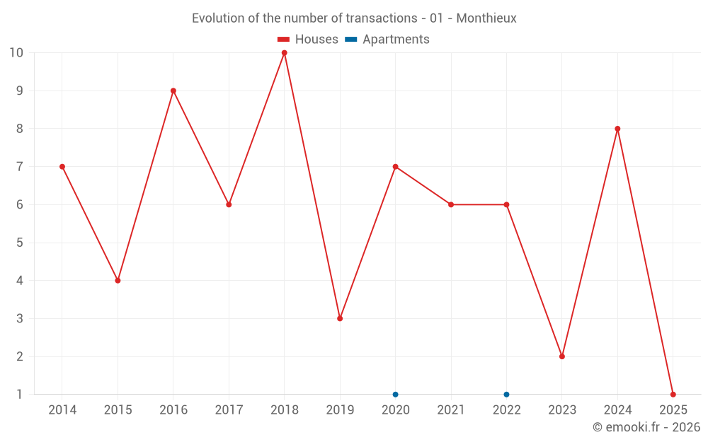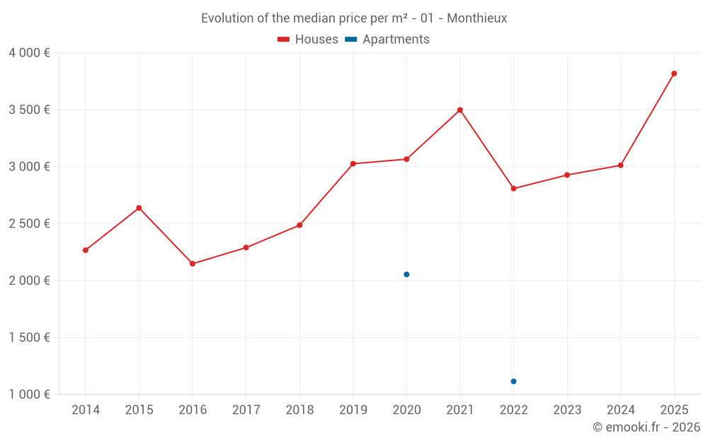 Real estate price map in the municipality of Monthieux, choose a section to see transactions by parcel.