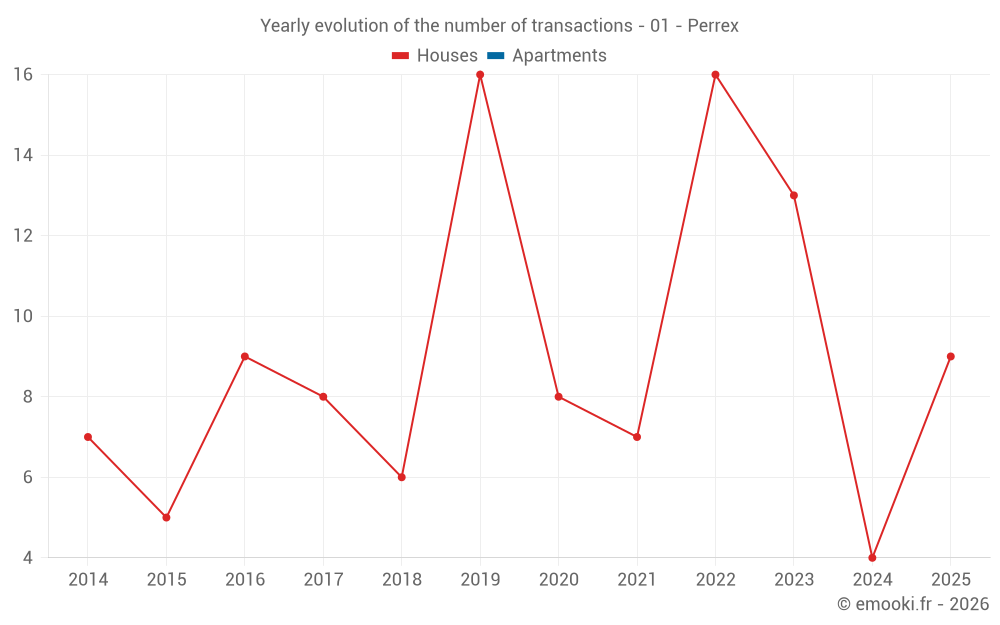 Real estate price map in the municipality of Perrex, choose a section to see transactions by parcel.