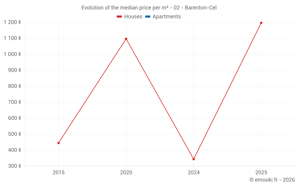 Real estate price map in the municipality of Barenton-Cel, choose a section to see transactions by parcel.