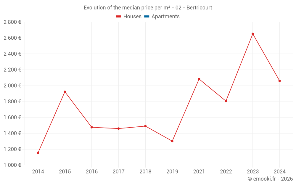 Real estate price map in the municipality of Bertricourt, choose a section to see transactions by parcel.