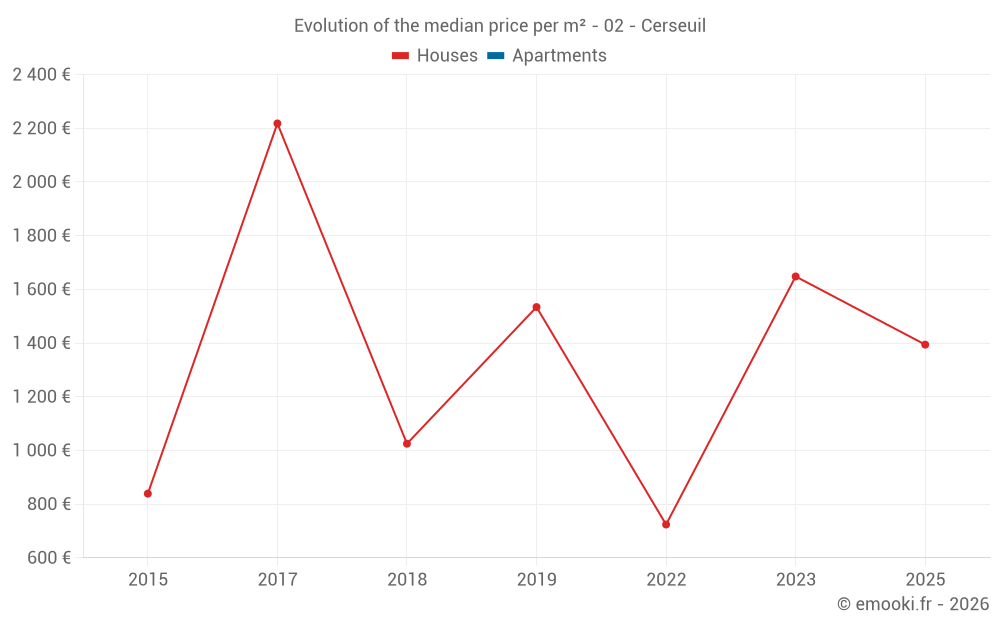 Real estate price map in the municipality of Cerseuil, choose a section to see transactions by parcel.