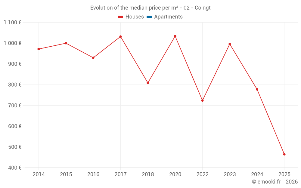 Real estate price map in the municipality of Coingt, choose a section to see transactions by parcel.