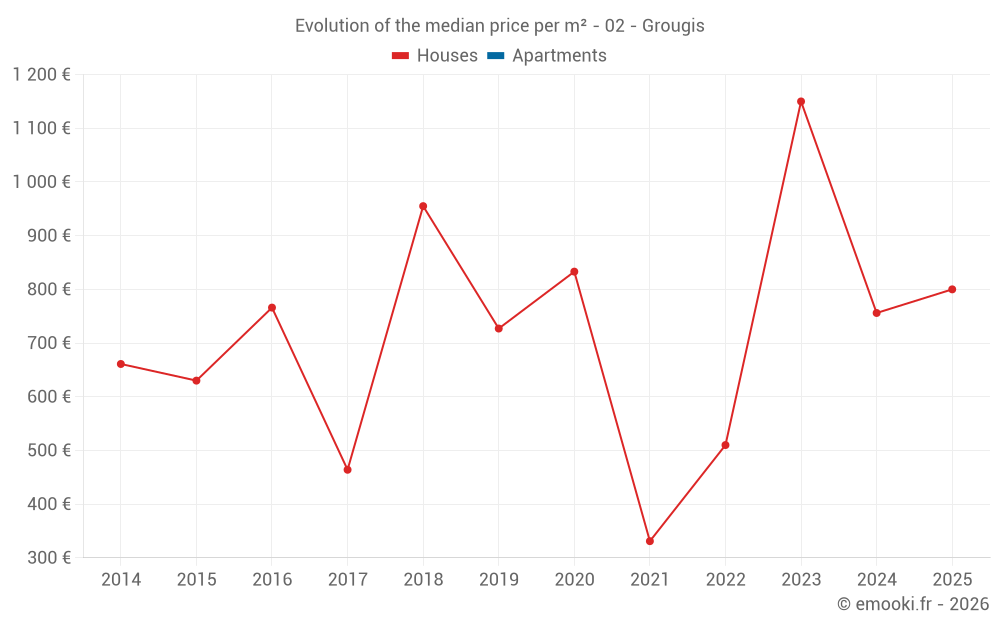 Real estate price map in the municipality of Grougis, choose a section to see transactions by parcel.