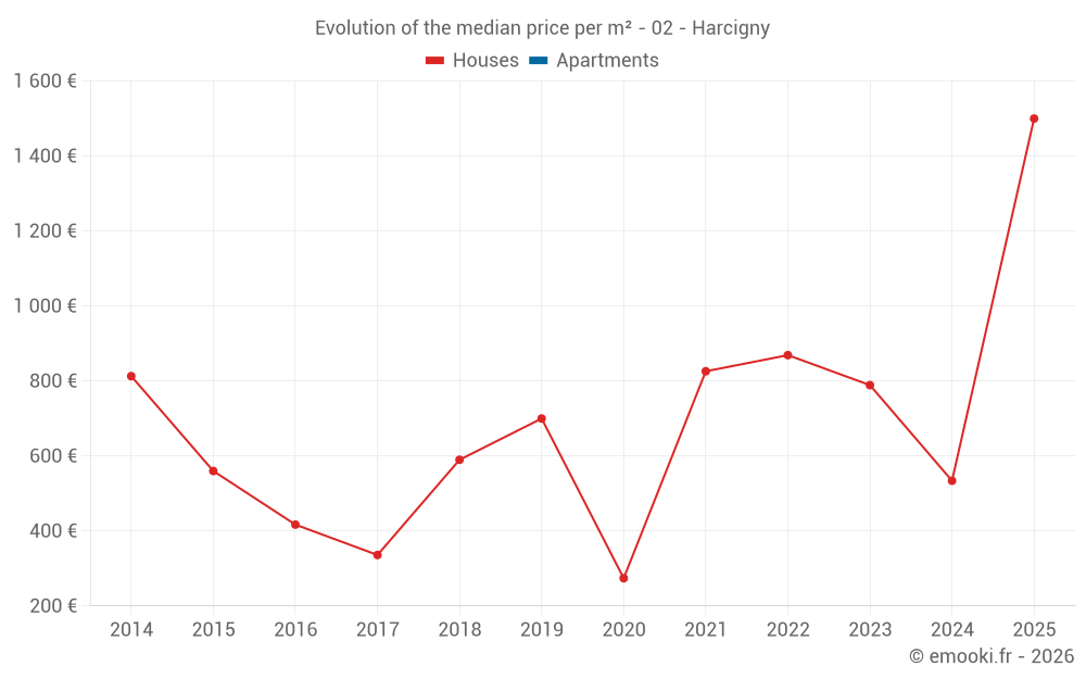 Real estate price map in the municipality of Harcigny, choose a section to see transactions by parcel.