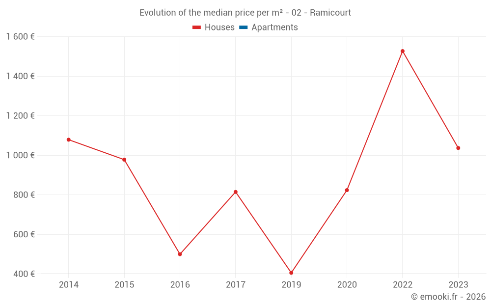 Real estate price map in the municipality of Ramicourt, choose a section to see transactions by parcel.