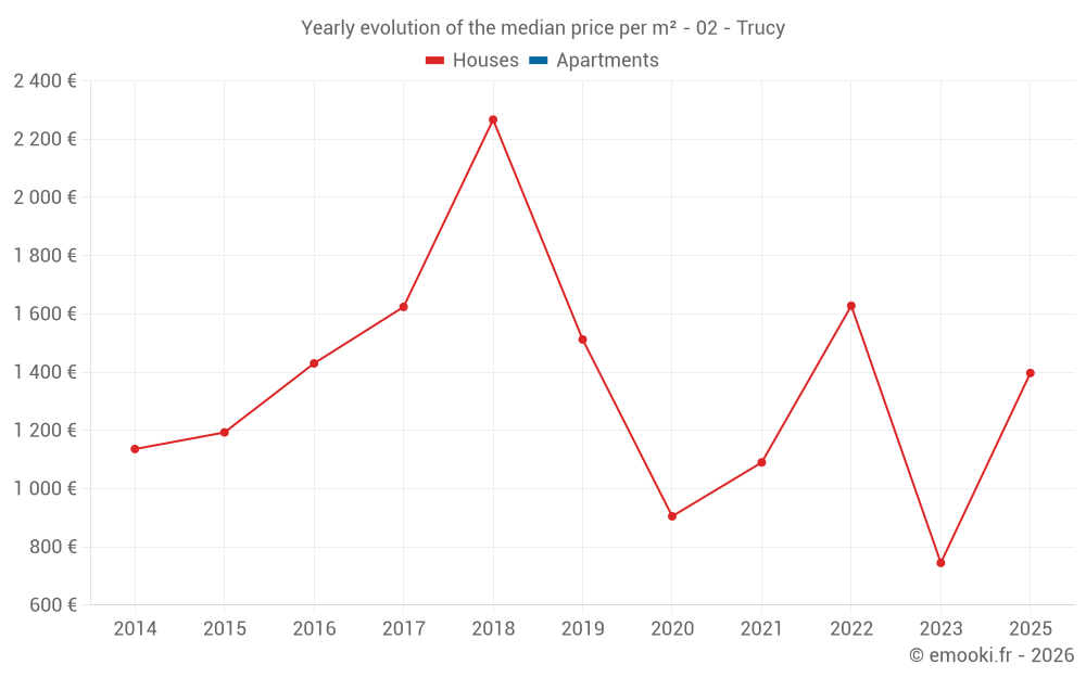 Real estate price map in the municipality of Trucy, choose a section to see transactions by parcel.