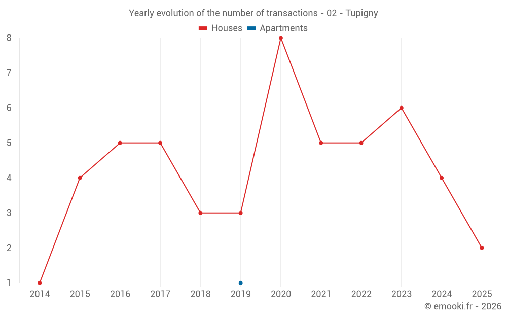 Real estate price map in the municipality of Tupigny, choose a section to see transactions by parcel.