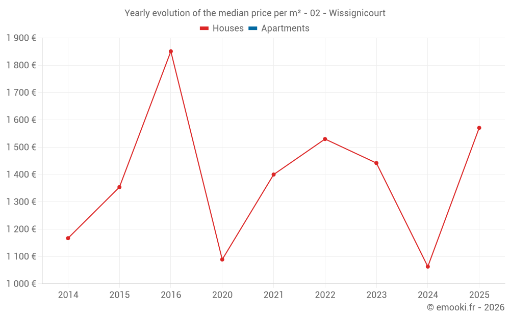 Real estate price map in the municipality of Wissignicourt, choose a section to see transactions by parcel.