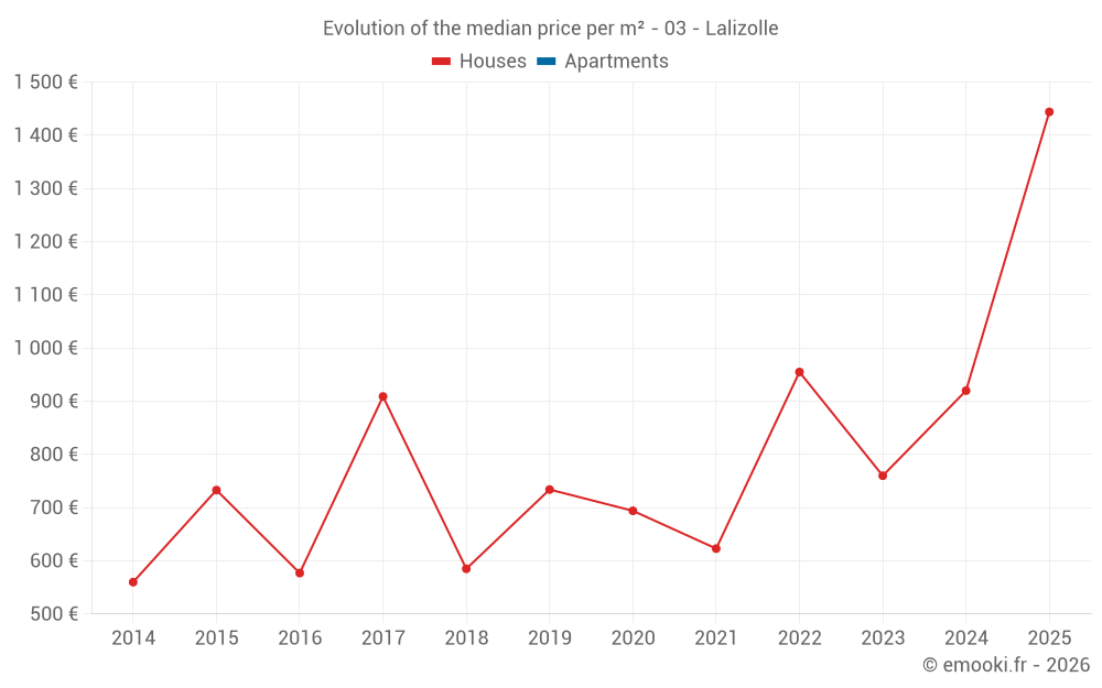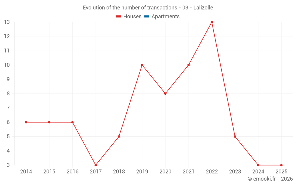 Real estate price map in the municipality of Lalizolle, choose a section to see transactions by parcel.