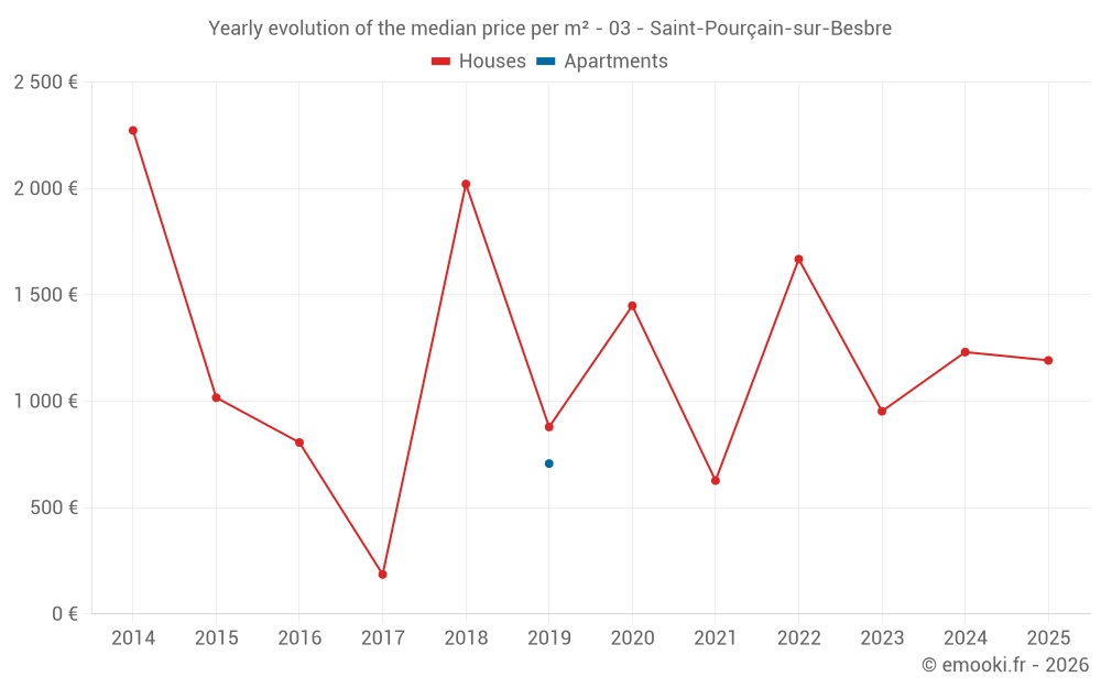 Real estate price map in the municipality of Saint-Pourçain-sur-Besbre, choose a section to see transactions by parcel.
