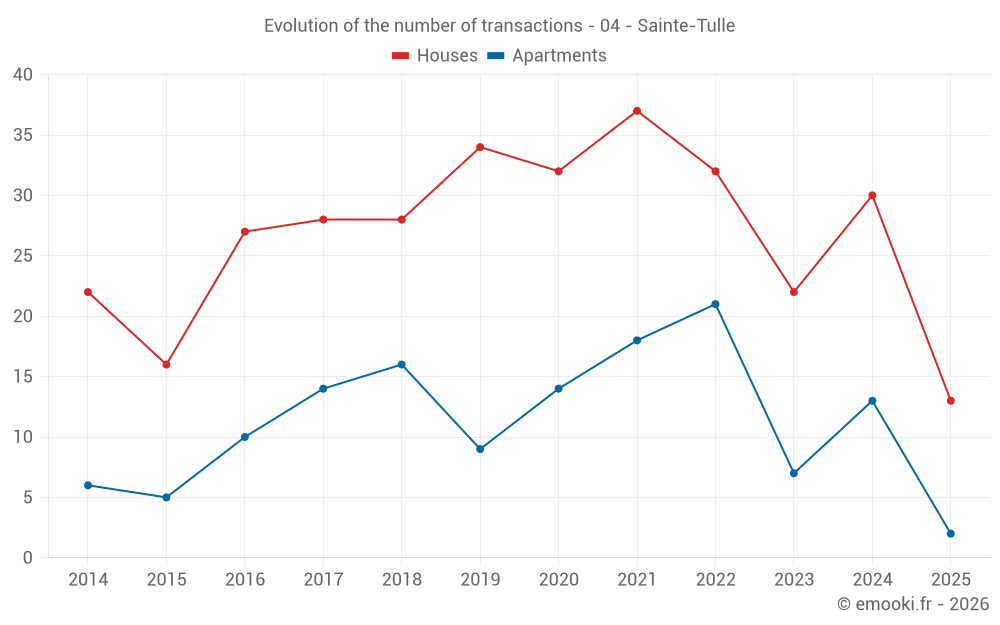Median price on the 40 transactions of the last 12 months.