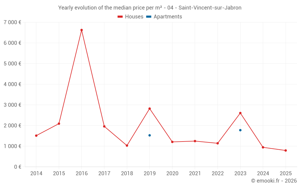 Real estate price map in the municipality of Saint-Vincent-sur-Jabron, choose a section to see transactions by parcel.