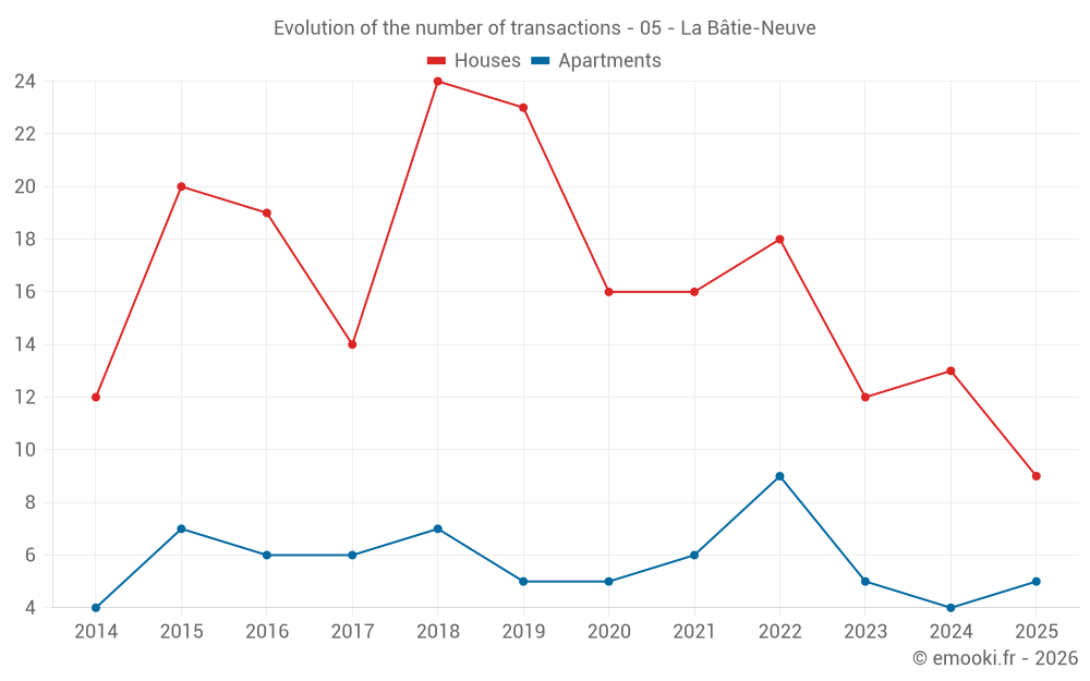 Median price on the 23 transactions of the last 12 months.