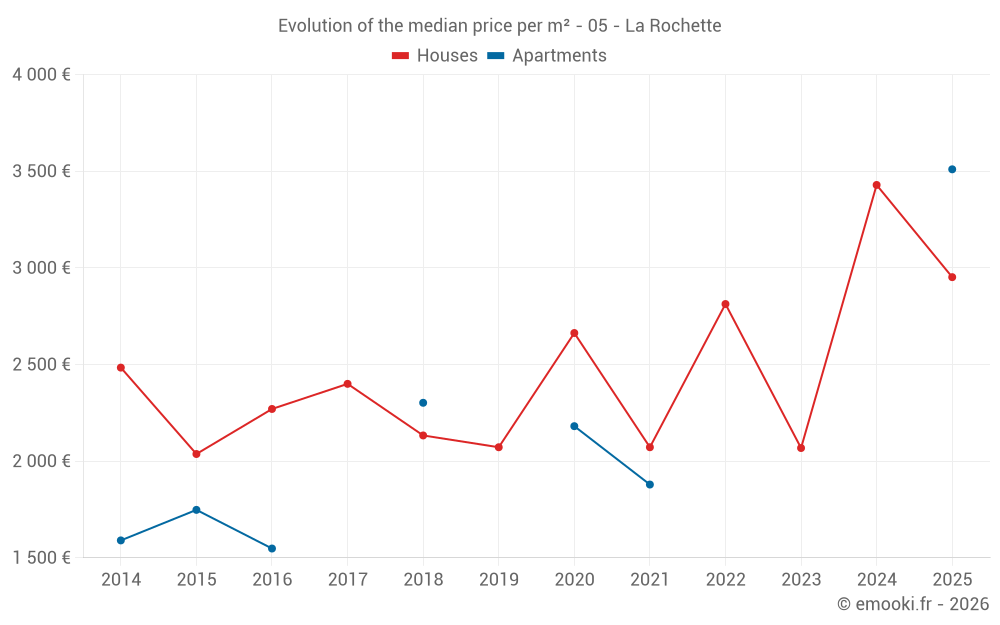 Real estate price map in the municipality of La Rochette, choose a section to see transactions by parcel.