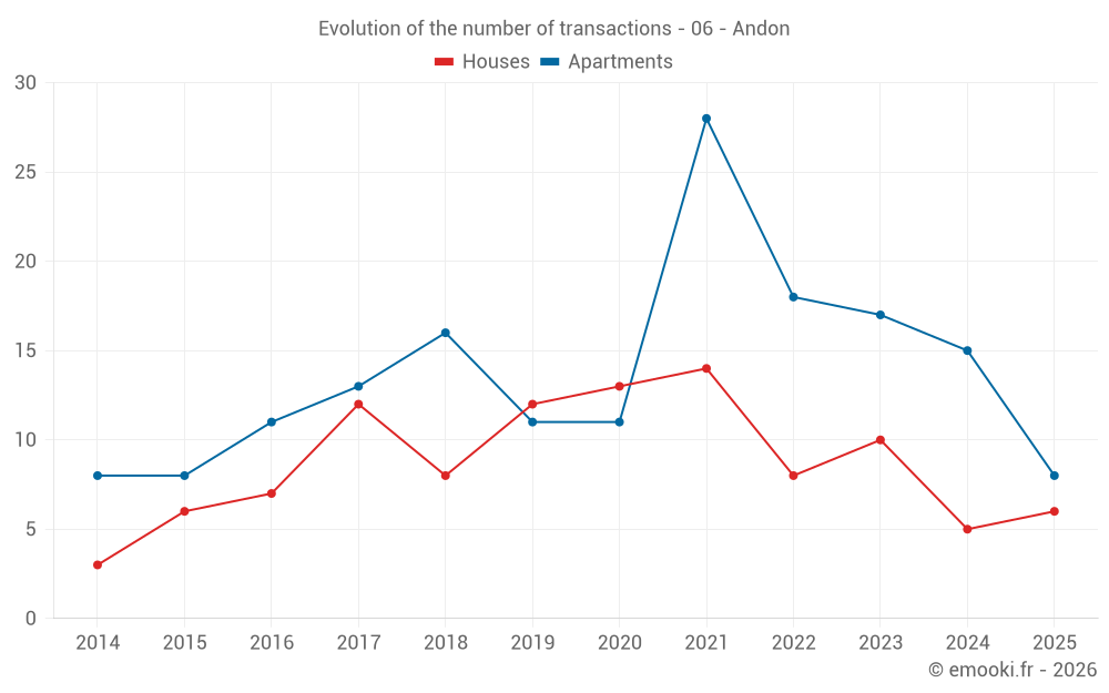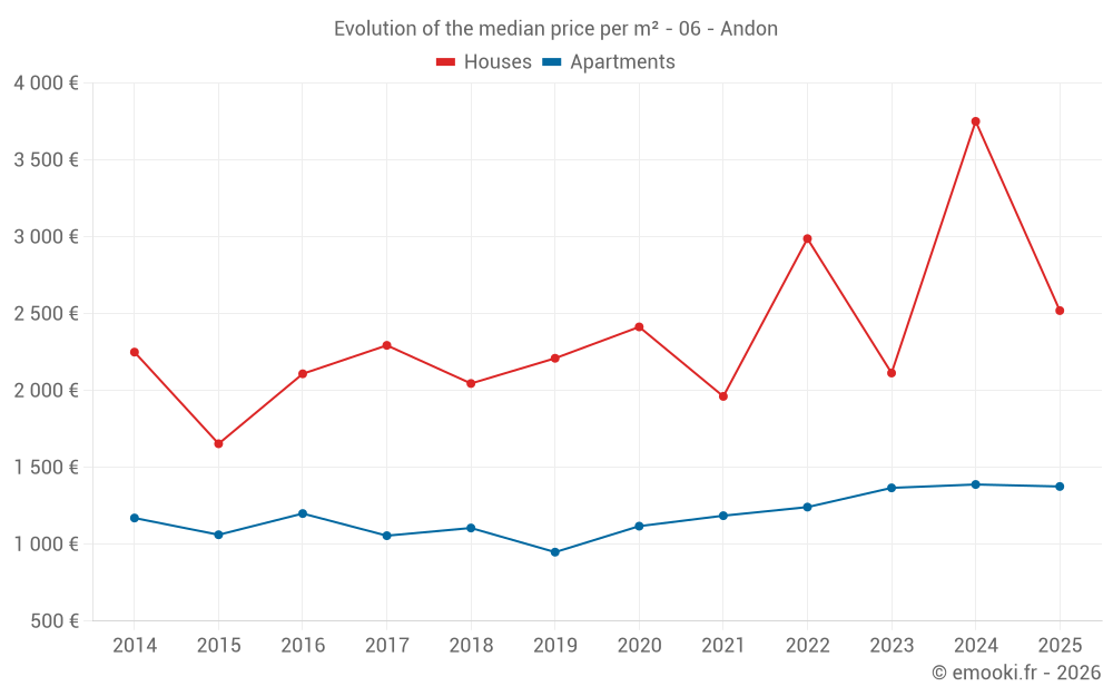 Median price on the 23 transactions of the last 12 months.