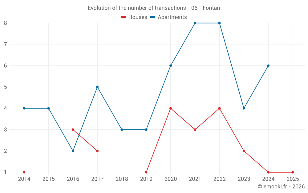 Real estate price map in the municipality of Fontan, choose a section to see transactions by parcel.