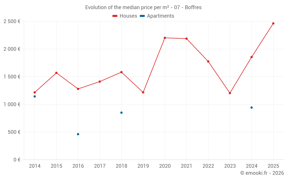 Real estate price map in the municipality of Boffres, choose a section to see transactions by parcel.