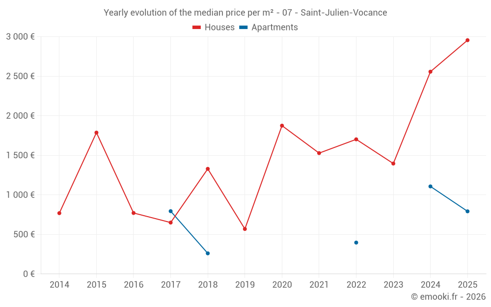 Price per m² in Saint-Julien-Vocance
