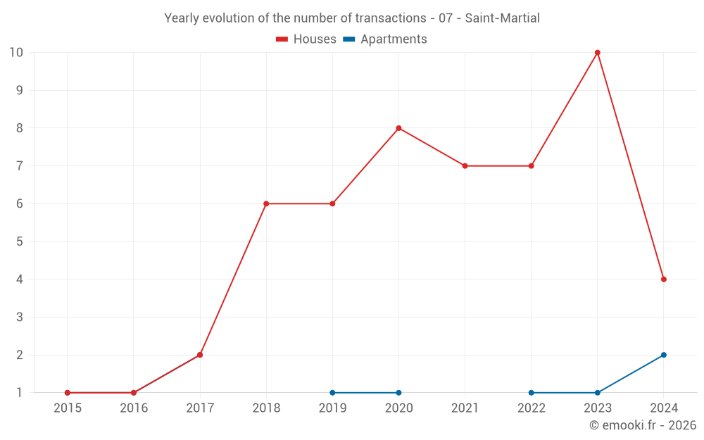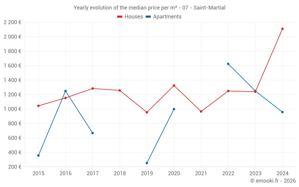 Real estate price map in the municipality of Saint-Martial, choose a section to see transactions by parcel.