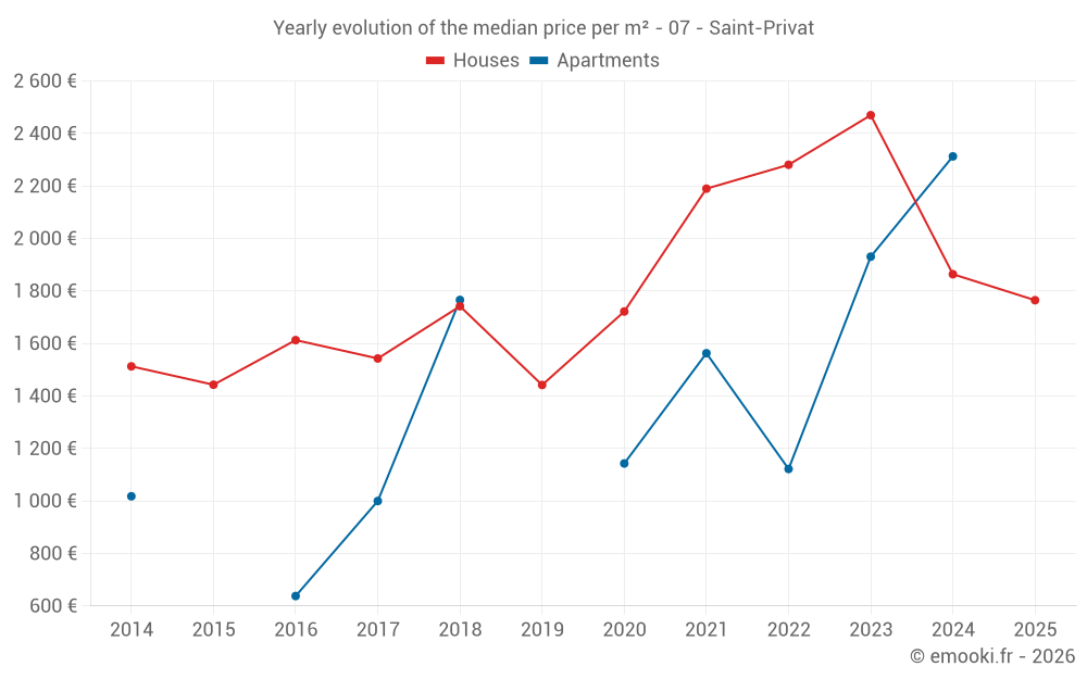 What is the price per m2 of houses in Saint-Privat?