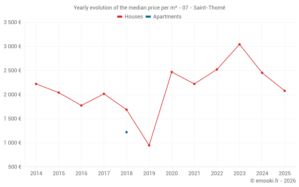 Real estate price map in the municipality of Saint-Thomé, choose a section to see transactions by parcel.