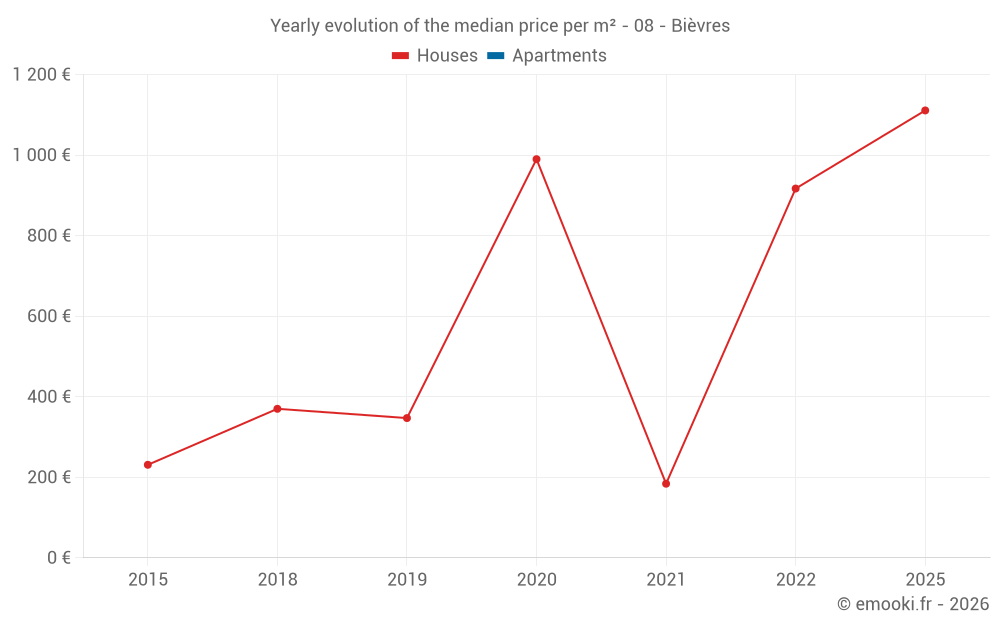 Real estate price map in the municipality of Bièvres, choose a section to see transactions by parcel.